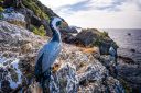 Beneath the wash, these waters are full of wonders: sea caves, pāua reefs, seaweed gardens, and New Zealand’s largest offshore bladder-kelp forest, which shelters crayfish larvae, juvenile fish, and a host of other marine animals. Endangered hoiho/yellow-eyed penguins breed on this headland, as do spotted shags and sooty shearwaters.