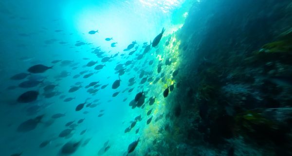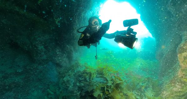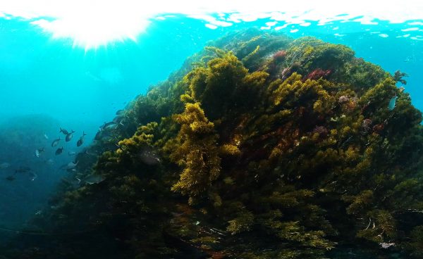 Why swim when you can scoot? Marine biologist Lucy van Oosterom, our VR Producer, hitches a ride through clouds of blue maomao and past swathes of kelp.