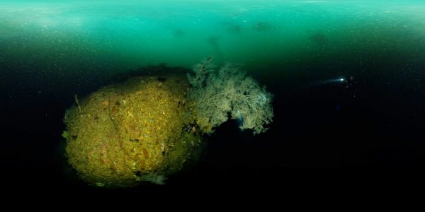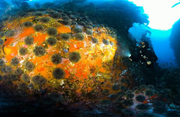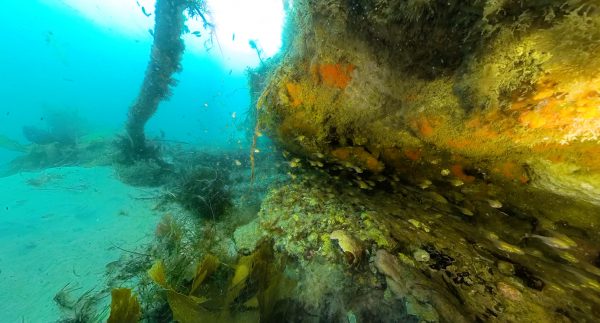 Project Reef juts out from the seafloor like a shipwreck. Seaweed and sponges cling to the rock, becoming habitat for crustaceans and invertebrate communities, and in turn, small reef fish and hoards of blue cod.
