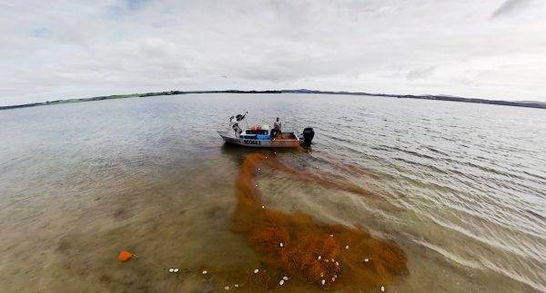 Commercial fishers from Te Kao clear mullet from their net in the shallows of Kokota Spit where they fish their quota.