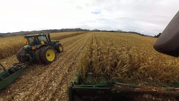 Though still damp with autumn rain Tony Ferkins decided it was "better to be cutting than doing nothing", so fired up the combine harvester in Tolaga Bay.