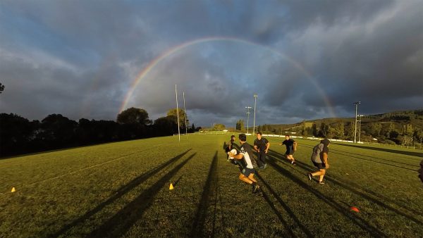The utes arrive for evening footy practice at the Hikurangi Sports Club in Ruatoria.