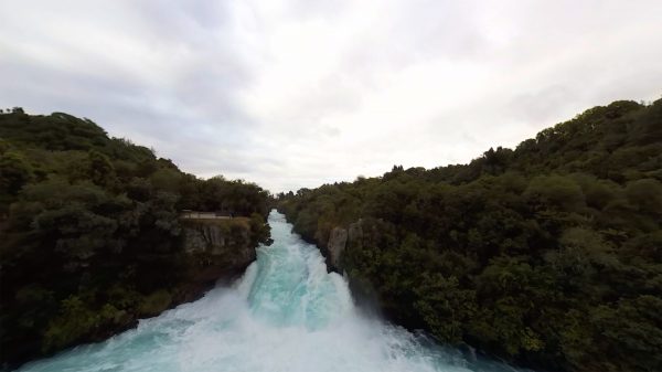 New Zealand's longest river narrows to a 15-metre cataract of whitewater at Te Waiheke o Huka, where some 220,000 litres of water per second tumbles over six-metre drop.