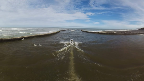 Mark "Frosty" Frost lines up the mouth of the Patea River and prepares to 'take the bar'.