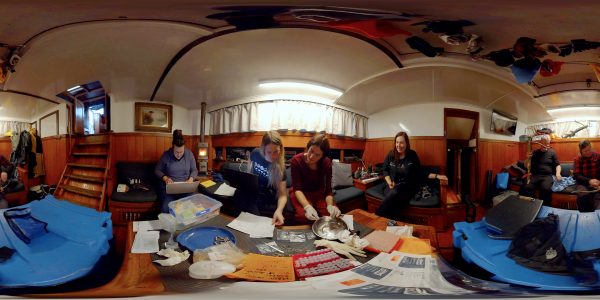 Scientists gather the day’s samples in the cosy saloon of the expedition ship Evohe. Every sample tells a story, but first you need to extract it from the dart. But the blubber can only tell you so much—the scientists also rely on data from drones to build three-dimensional models of the whales, satellite tags to trace their migration, and scoops of poo to understand what they’re eating.