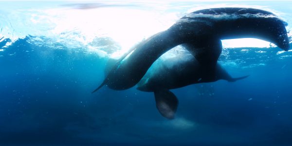 See whales up close and (very, very) personal—This may be the first footage ever recorded of southern right whales mating, shot with a remote 360/3D camera hanging off a float in the waters of Port Ross. Packing a four-metre-long penis and testes together weighing a tonne, southern rights have the biggest package in the animal kingdom. It suggests that ‘sperm competition’ may be important in the mating process, as we can see here—there is more than one suitor in the shot.
