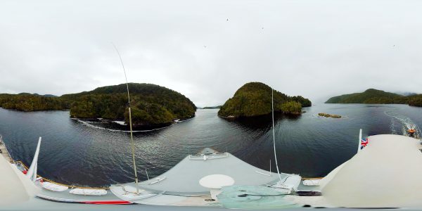 The radar tower affords a dramatic view as MV Flightless leaves the narrow entrance Pickersgill Harbour and makes for the Outer Islands of Dusky Sound. It was here board Cook’s second voyage in 1773 that Resolution stopped for repairs and recuperation, made the first beer out of rimu and manuka and fixed the exact position of New Zealand at Astronomer’s Point.